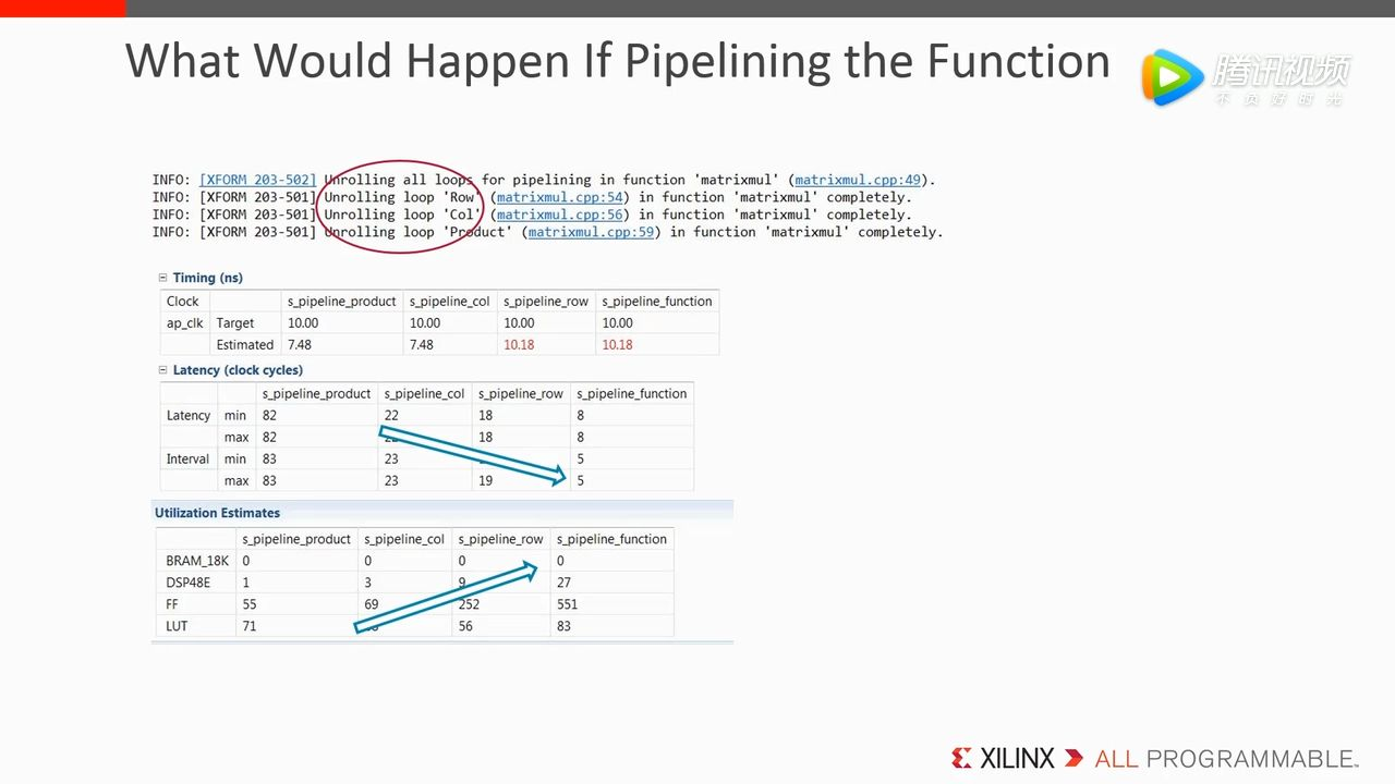 对 inner loop 做 pipeline,可以理解成将两个 loop 展开(计算一共执行了多少次),得到的次数是 8。