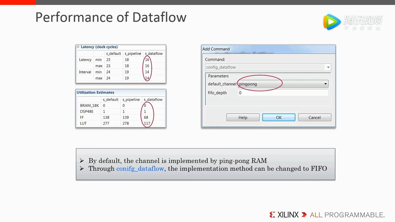 可以通过 Configure dataflow 来配置 channel 的类型,默认情况下使用 ping-pong RAM。